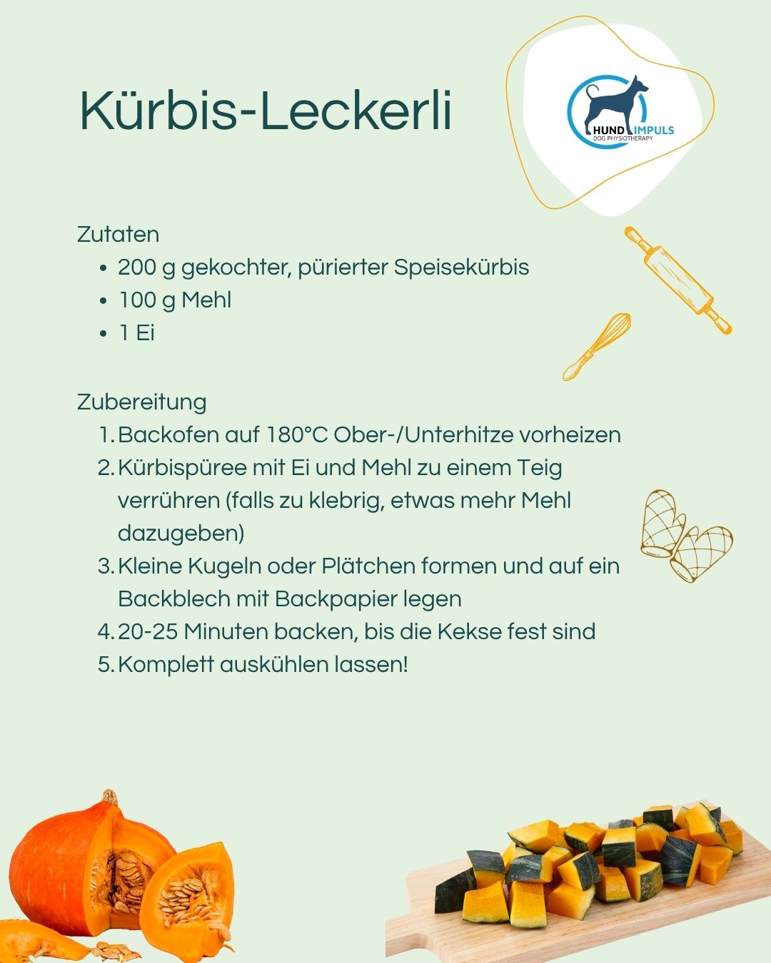 Also: Ran an den Kürbis und losbacken! Dein Hund wird diese gesunden Kürbis-Leckerlis lieben!